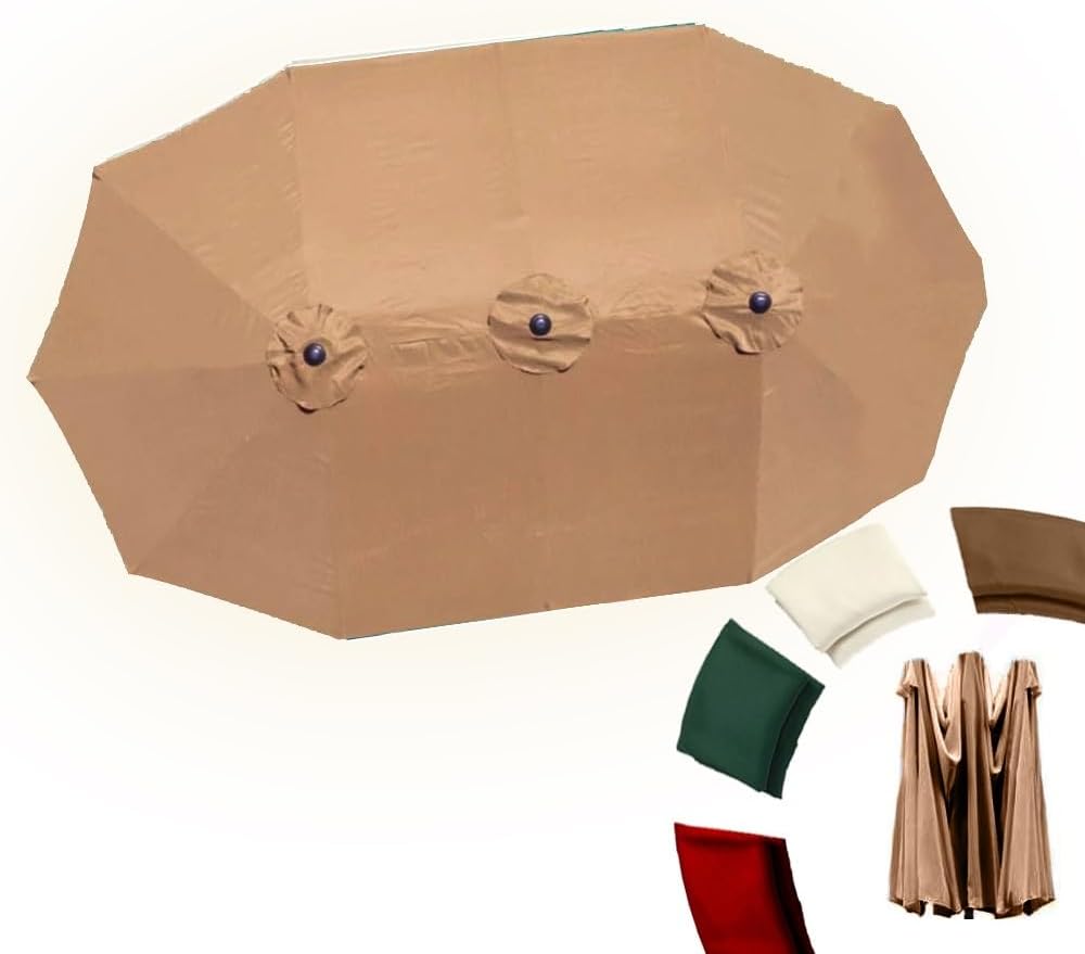 The umbrella changing cloth gives your umbrella a new look, effectively protecting you from harmful direct sunlight and enjoying outdoor relaxation. Beautify your backyard, pool area, garden, deck.Product name: Replacement Umbrella CanopyMaterial: Polyester fabricFunction: Shade, sunscreen, waterproof, UV protectionFeatures: tear resistant, fade resistantColors: Grey , Dark green , Khaki , BeigeScope of application: market, outdoor, patio, terrace, deck, swimming pool, backyard, beachSize: 4.6m x 2.7m (15'x9')Shape: Round, three-headed umbrellaNote: Only 1 awning cloth is included, no stand is included.Note:1. Due to manual measurements, please allow an error of 1-2 cm.2. The product is a physical photo, but due to factors such as shooting angle, light, display parameters, etc., the color of the physical product may be different from the photo, and the actual product shall prevail.